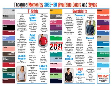 NEW STYLES AND COLORS! Every Spring, colors and styles arrive and disappear (it's the way the garment industry works). So every year things change here at Theatrical Mementos too!